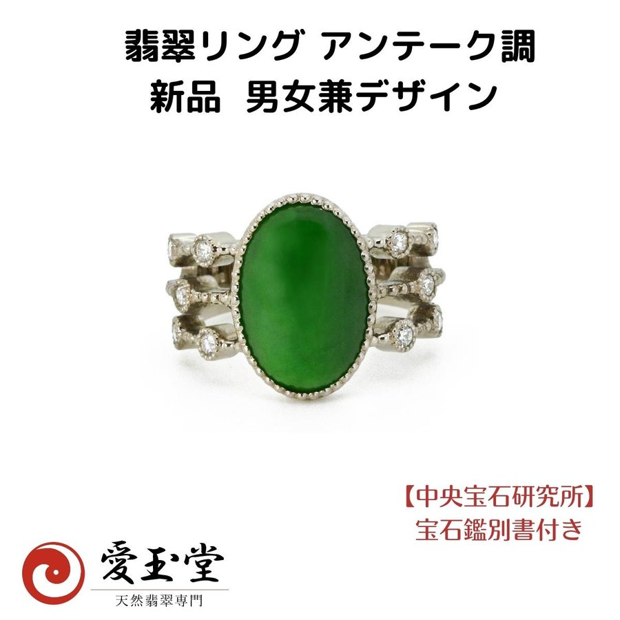 翡翠 アンティーク調【新品】 K18WG リング 日本製 手造り