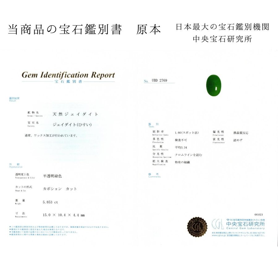 ≪ 中央宝石研究所 ≫ 宝石鑑別書付属