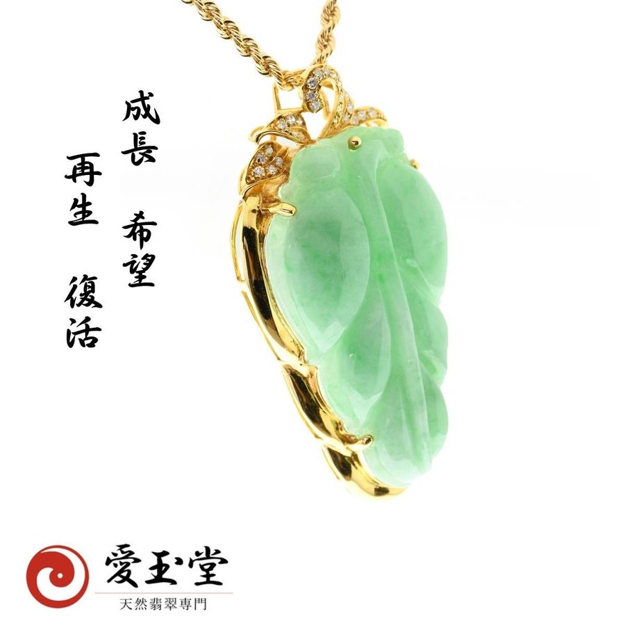 繁栄 若草 リーフ 翡翠 ひすい K18ペンダント・ロープチェーン付
