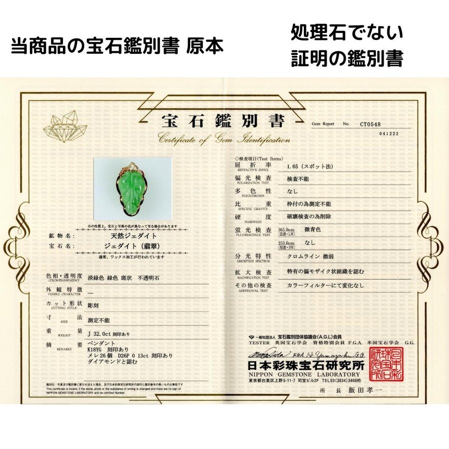 ≪ 日本彩珠宝石研究所 ≫ 宝石鑑別書付属