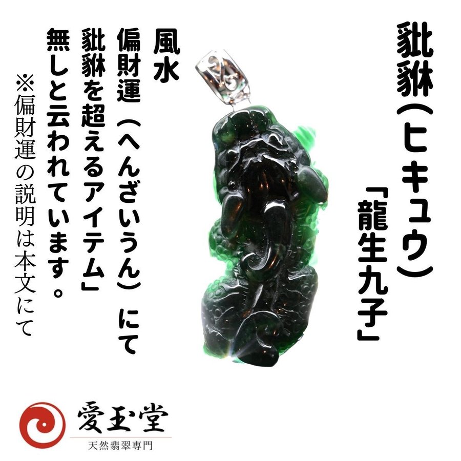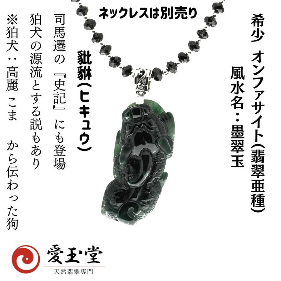 豼貅(ヒキュウ):風水最高の金運動物、希少 オンファサイト(翡翠亜種) 風水名:墨翠玉