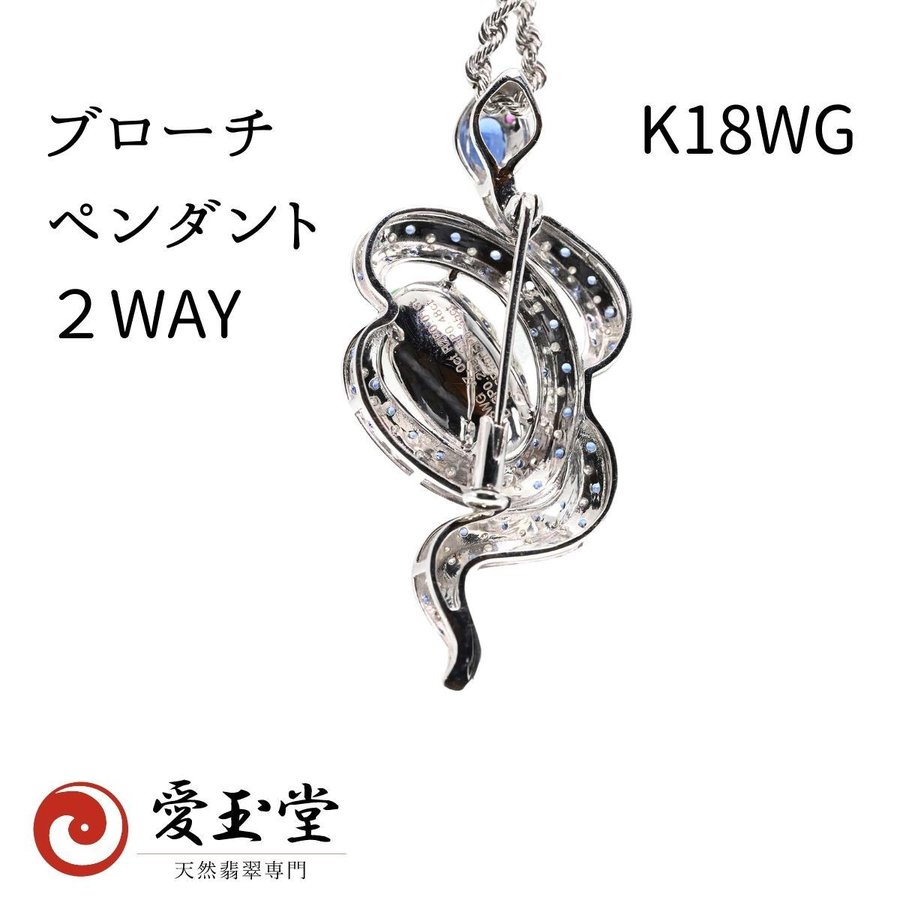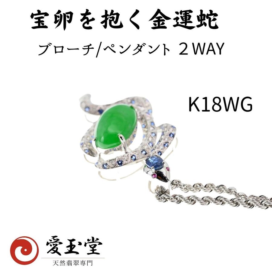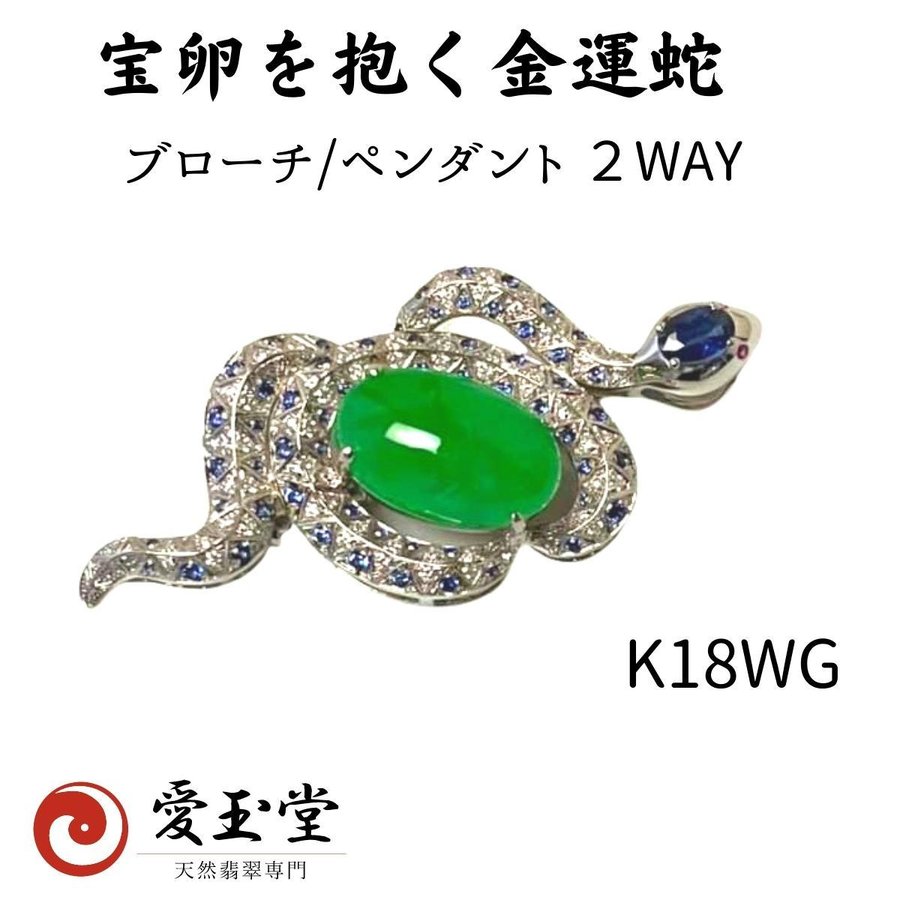宝卵(翡翠) を抱く 金運蛇 K18WG ブローチ/ペンダント・ロープチェーン付