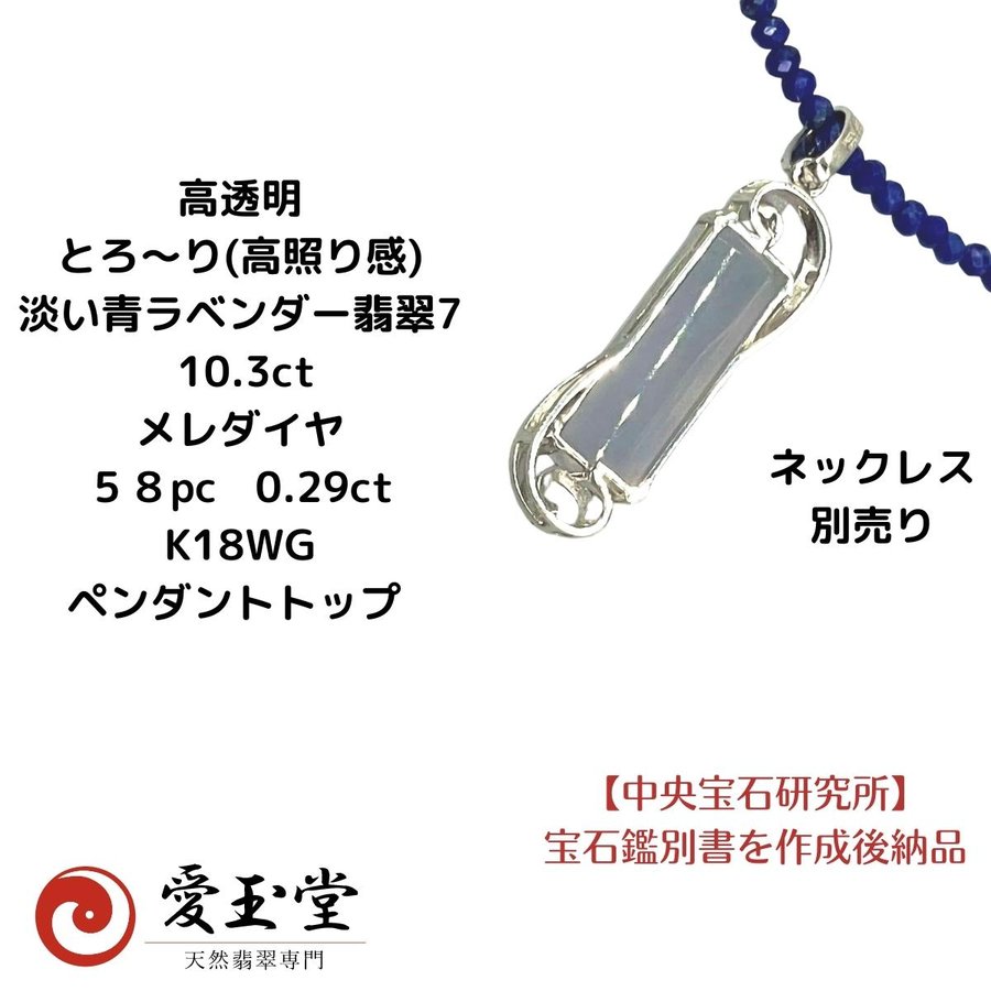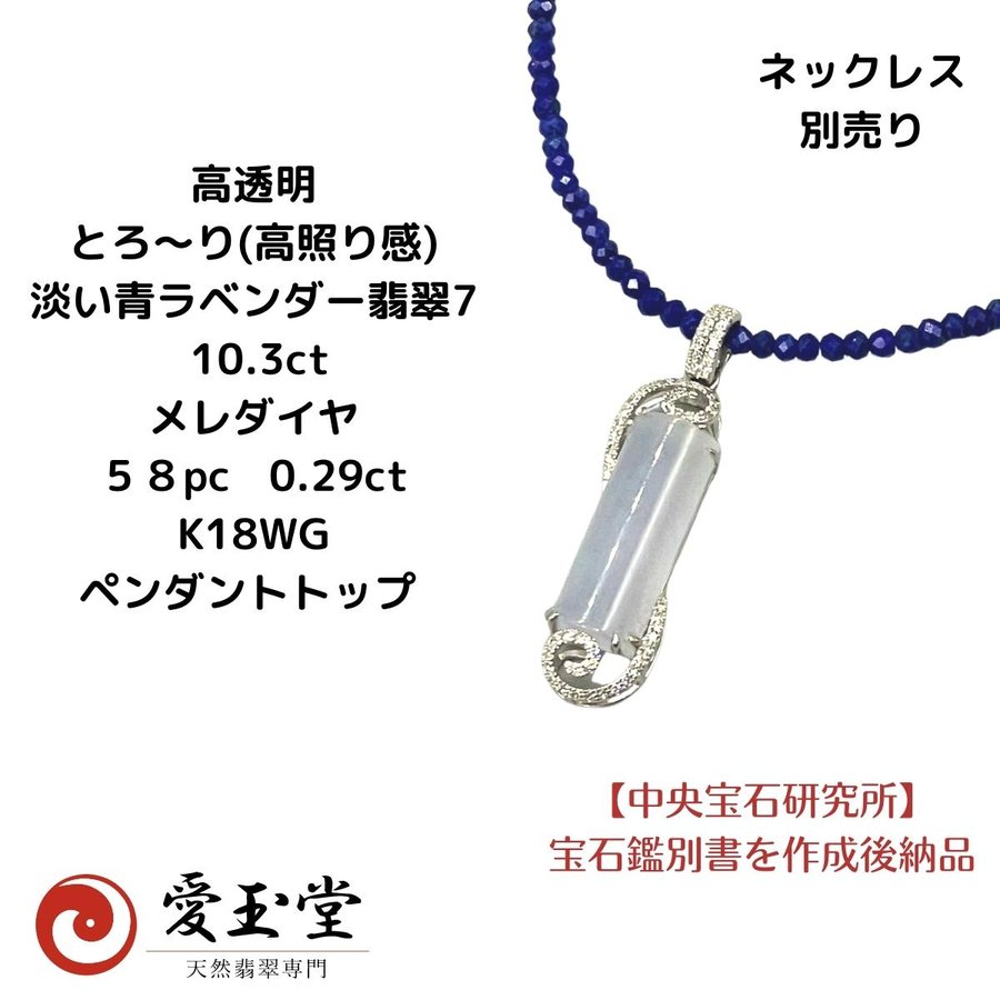 高透明・とろ〜り(高照り感) 淡い青ラベンダー翡翠 K18WG ペンダントトップ