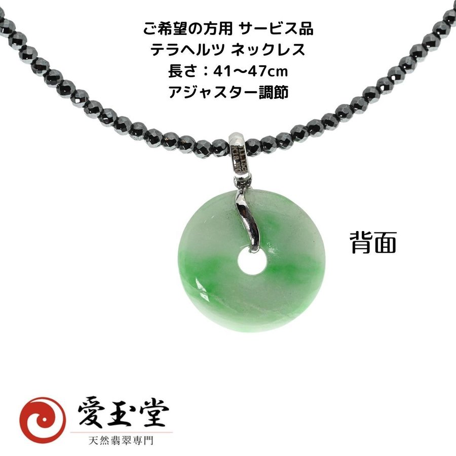 玉璧(完璧の語源)翡翠 ひすい K18WG ペンダント、テラヘルツ・ネックレス サービス
