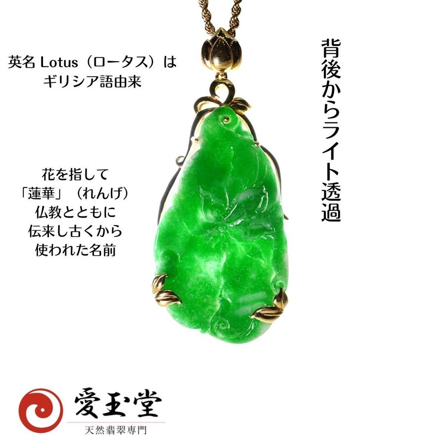翡翠 蓮葉&K18 蓮華蕾 ペンダント・ロープチェーン付