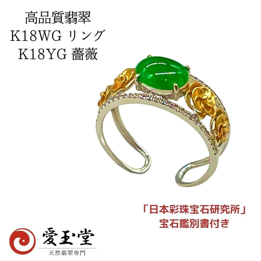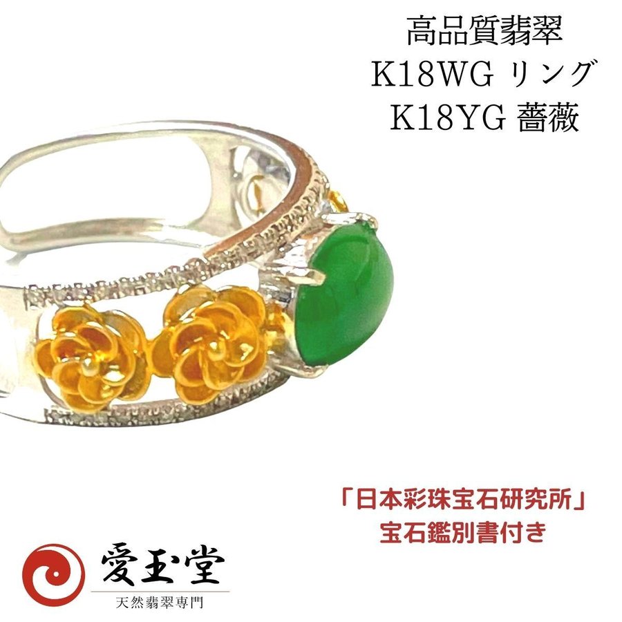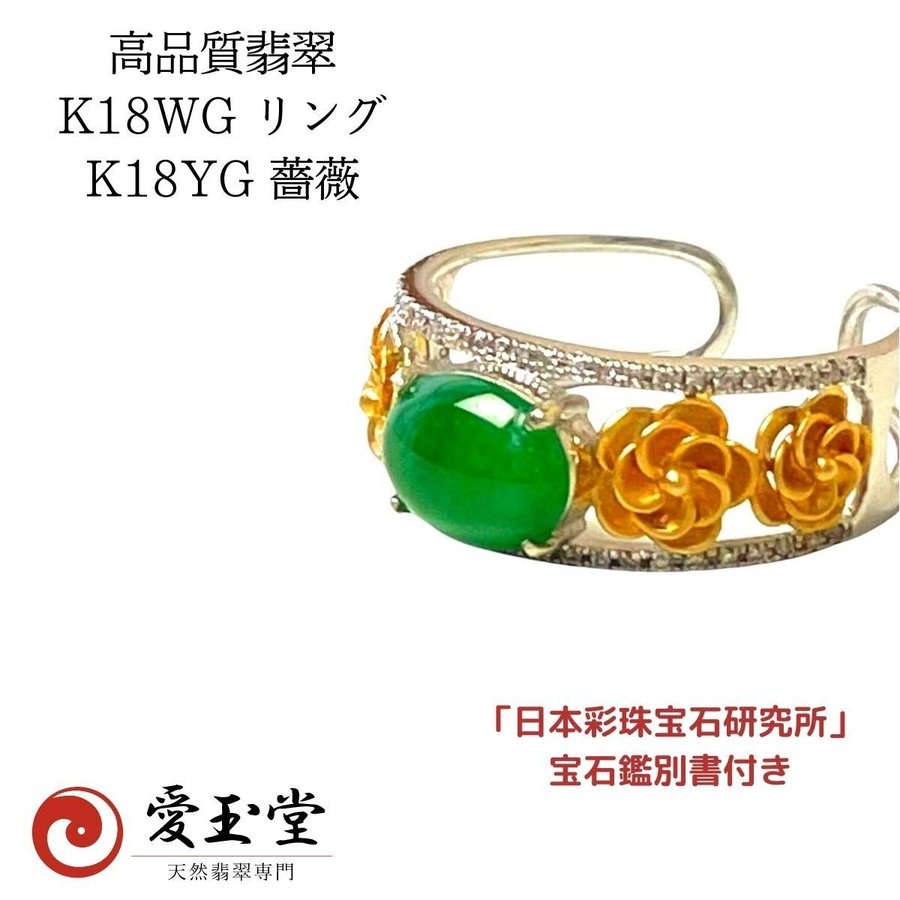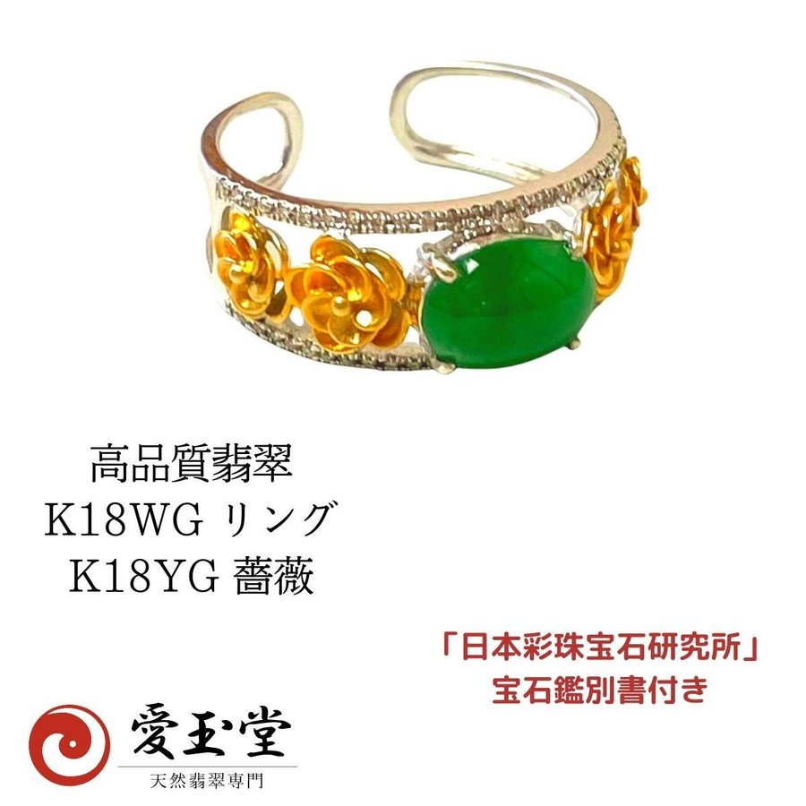 高品質 翡翠 K18WG リング K18YG 薔薇